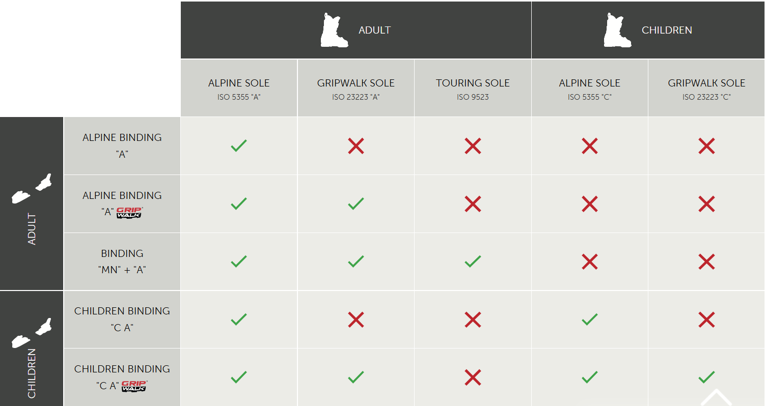 IMPORTANT: A ski boot equipped with GripWalk boot soles, MUST be used with a GripWalk, WTR (Walk to Ride), Multi-Norm (MN or MNC) or Sole.ID compatible binding.